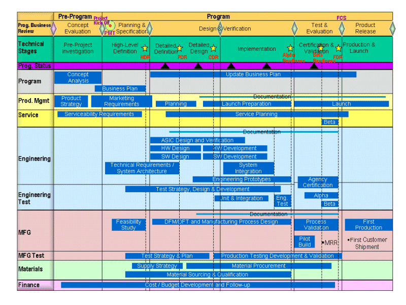 Build Cost / Budget Development and Follow-up Supply Strategy Material Procurement Production Testing Development & Validation Material Sourcing & Qualification Test Strategy & Plan TEAM_1.HTM HDR PDR CDR FDR Documentation Documentation Engineering Prototypes Test Strategy, Design & Development Beta Kikcoff Review Test & Evaluation Stage Review Design and Verification Stage Review Project Kick Off Planning & Specification Stage Review Launch Marketing Documentation Product Release Stage Review First